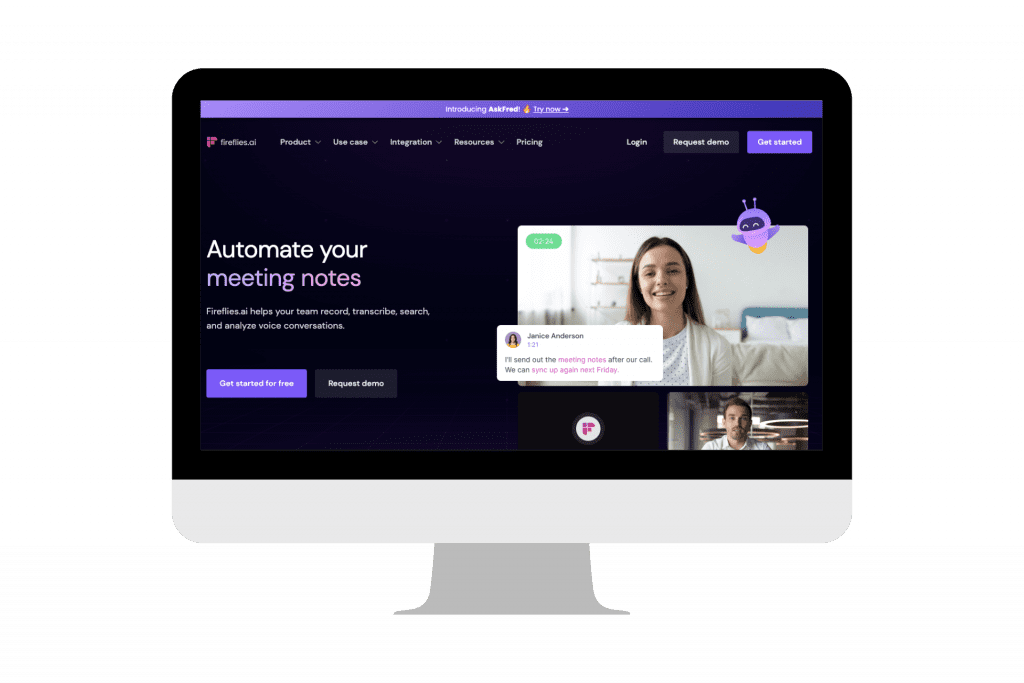 • Automatische Aufzeichnung und Transkription von Meetings: Fireflies.ai zeichnet automatisch Meetings auf und transkribiert sie in Echtzeit, um Zeit und Aufwand beim Notieren von wichtigen Informationen zu sparen.